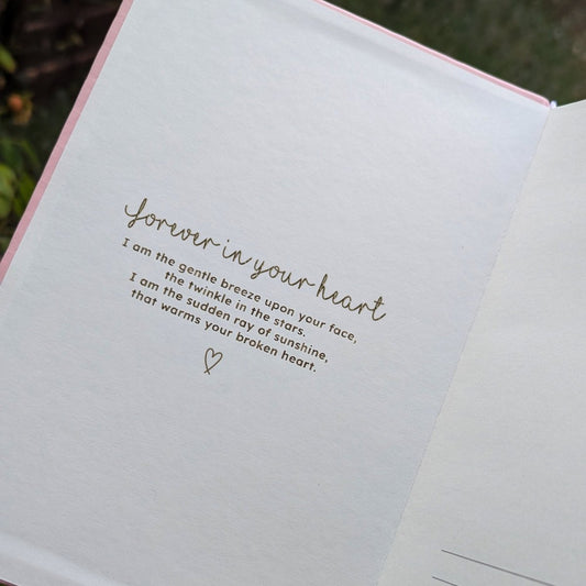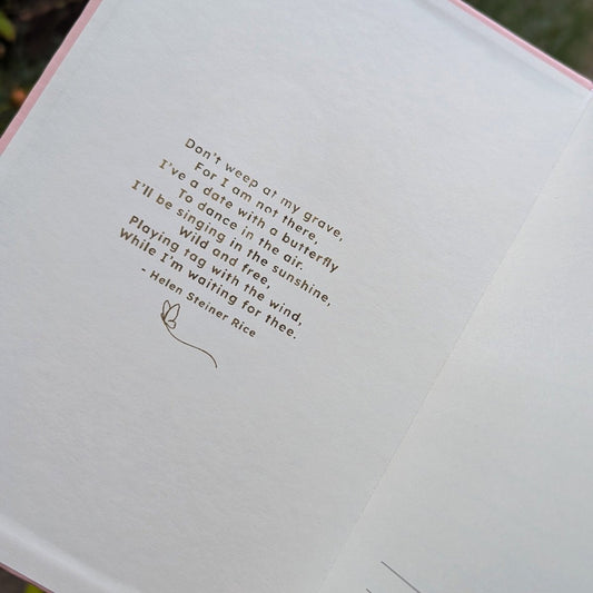 As a unique gift for grief, I am able to print a personal message, grief quote or treasured grief poem to the inside cover of my personalised notebooks.
