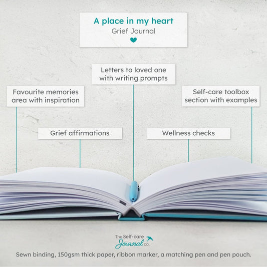 Whether your grief is recent, or from a long time ago; writing to your loved one and capturing those treasured memories on paper can be incredibly comforting. I have my gently guided grief journals, or personalised notebooks if you prefer to start with a blank page.